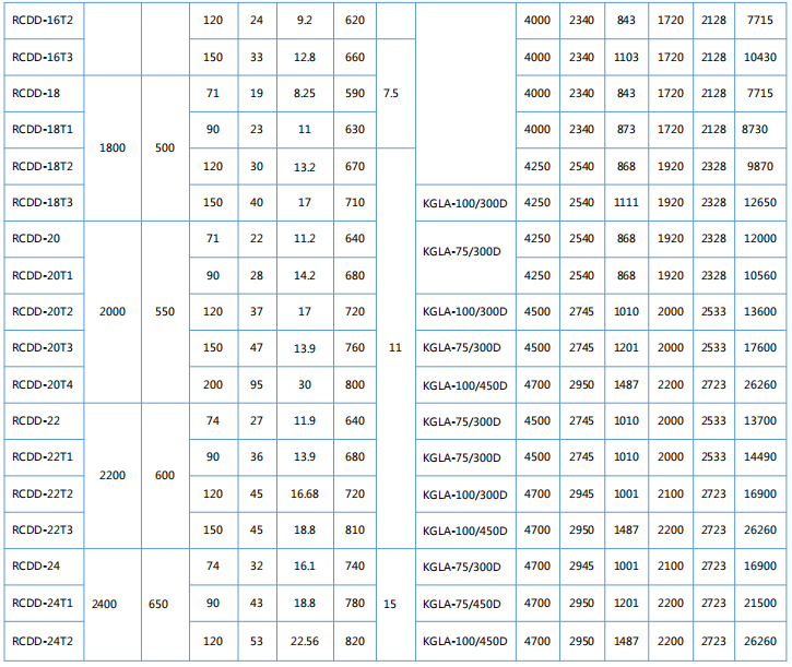 四、RCDD系列懸掛帶式自冷電磁除鐵器主要技術參數、外形尺寸 執行標準:JB/T7689